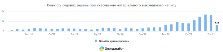 Однако исполнительную надпись можно обжаловать в суде, и граждане делают это все чаще: в 2018-м году было 2923 отмены исполнительных надписей, в 2020-м — уже 5772, то есть за два года этот показатель увеличился в два раза.