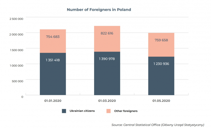 Отметим, что подавляющее большинство украинцев (более 1 100 000) проживают в Польше на основании виз, безвизового передвижения или находятся в процессе подачи заявления на получение вида на жительство. Граждане, проживающие на этих базах, не имеют ряда прав или социального обеспечения.
