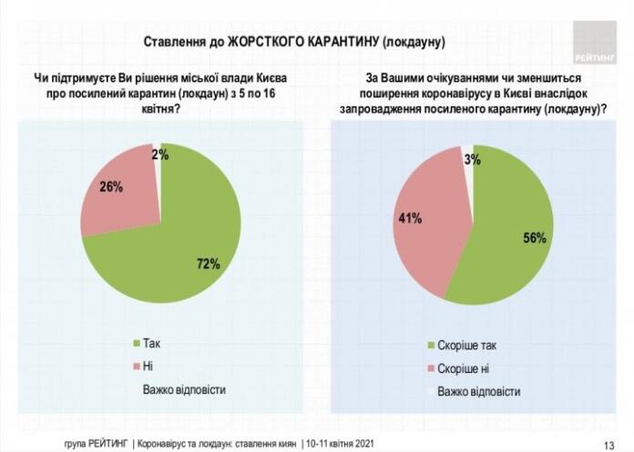 Об этом свидетельствуют результаты исследования, проведенного социологической группой «Рейтинг» среди киевлян 10−11 апреля.