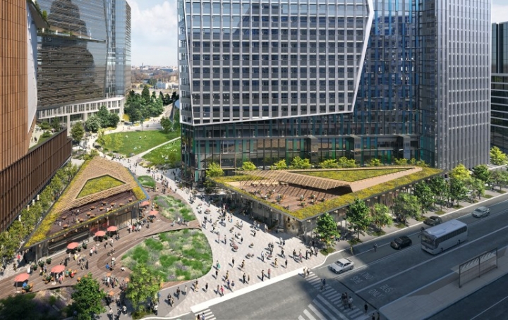 Кампус вокруг Helix будет включать три 22-этажных здания, площадь с зелеными насаждениями и различные площадки для отдыха. Также будет предусмотрено место для магазинов, ресторанов и точек уличной еды. Парковка будет вмещать до 950 велосипедов.