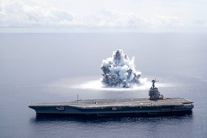 Американский авианосец Gerald R. Ford испытали взрывом подводной бомбы. Как сообщает The Drive, таким образом планировалось проверить надежность всех систем судна.