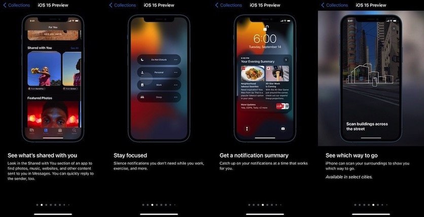 В числе нововведений iOS 15 компания отметила такие функции, как режим фокусировки для более продуктивной работы, расширенные возможности центра уведомлений, 3D-карты для избранных городов, а также доступ к галереям фотографий, которыми поделились другие пользователи.