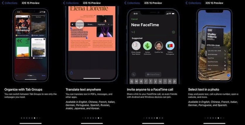 Кроме того, Apple напомнила, что в iOS 15 появится встроенный переводчик, вызвать который можно будет практически в любых приложениях, и функция организации вкладок в браузере по группам. Пользователей также ждёт обновлённое приложение FaceTime и функция выделения текста на фотографиях.