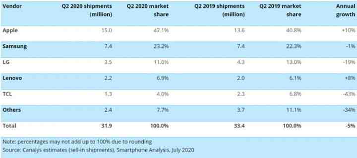 Компания Canalys обнародовала статистику по американскому рынку смартфонов по итогам второго квартала текущего года: на фоне пандемии отрасль показала 5-процентный спад в годовом исчислении.