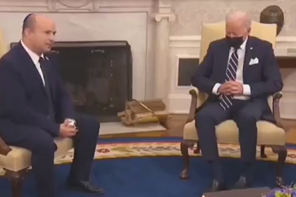 Переговоры между Байденом и Беннетом проходят в США. На пресс-конференции глава правительства Израиля рассказывал о новом этапе дружбы между американским и израильским народами. В это время лидер США неподвижно сидел напротив с закрытыми глазами.