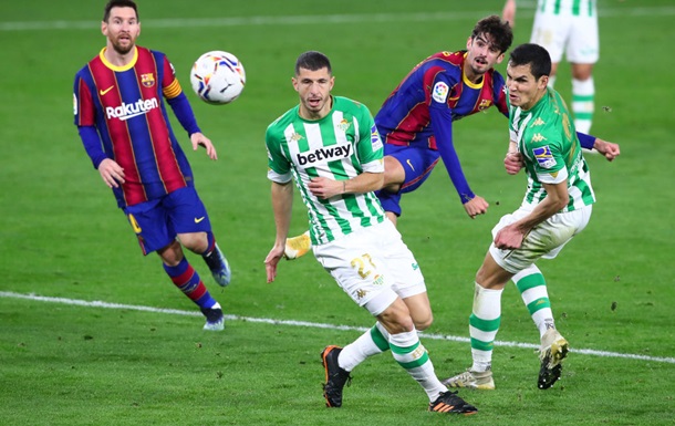 Барселона в гостях одержала волевую победу со счетом 3:2 над Бетисом в матче 22-го тура Примеры.