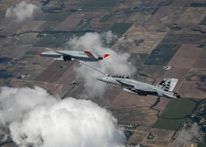 Экспериментальный палубный беспилотник-заправщик MQ-25 Stingray впервые дозаправил в полёте истребитель F/A-18 Super Hornet. Это позволит к концу года перевести испытания на авианосцы, чтобы максимально приблизиться к полевым условиям.