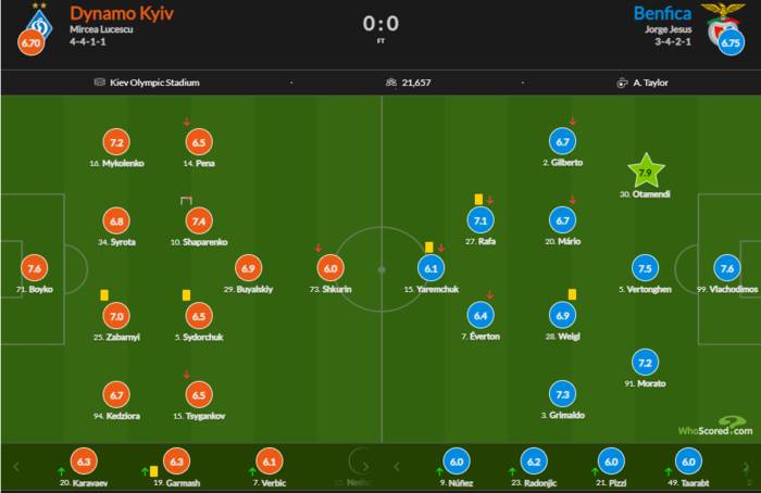 Отметим, что украинский форвард «орлов» Роман Яремчук получил за эту встречу оценку 6,1. Это самая низкая оценка среди игроков португальского клуба, которые вышли в стартовом составе команды.