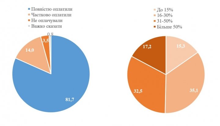 Среди респондентов, которые частично или полностью платили за коммунальные услуги, 35,1% утверждают, что стоимость коммунальных услуг составляет 16−30% от дохода домохозяйства, а по словам 49,6% респондентов — более 30% от дохода.