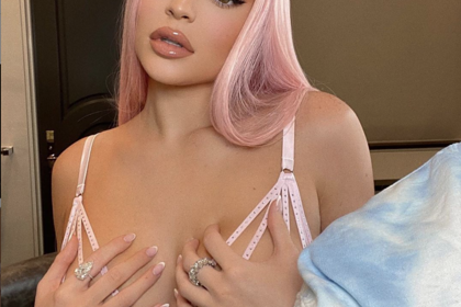 На размещенном кадре 22-летняя знаменитость позирует в розовом бюстгальтере со стразами, чашка которого оголяет грудь. Кроме того, она надела парик такого же цвета, а на лицо нанесла нюдовый макияж, сделанный с помощью средств собственного косметического бренда Kylie Cosmetics. Из аксессуаров на Дженнер — кольцо с крупным бриллиантом.