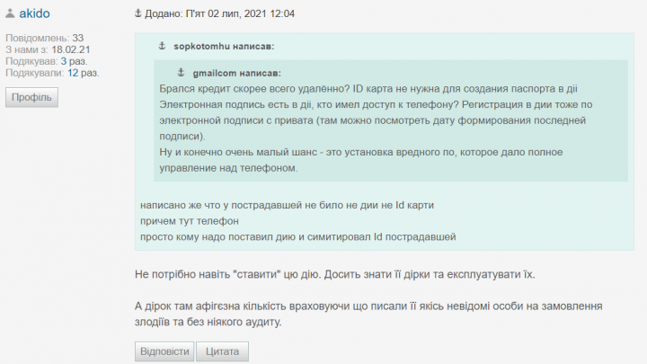 Некоторые, как пользователь форума с ником akido, абсолютно не доверяют «Дії» и в комментариях убеждали в том, что установка приложения на смартфон может быть небезопасна.