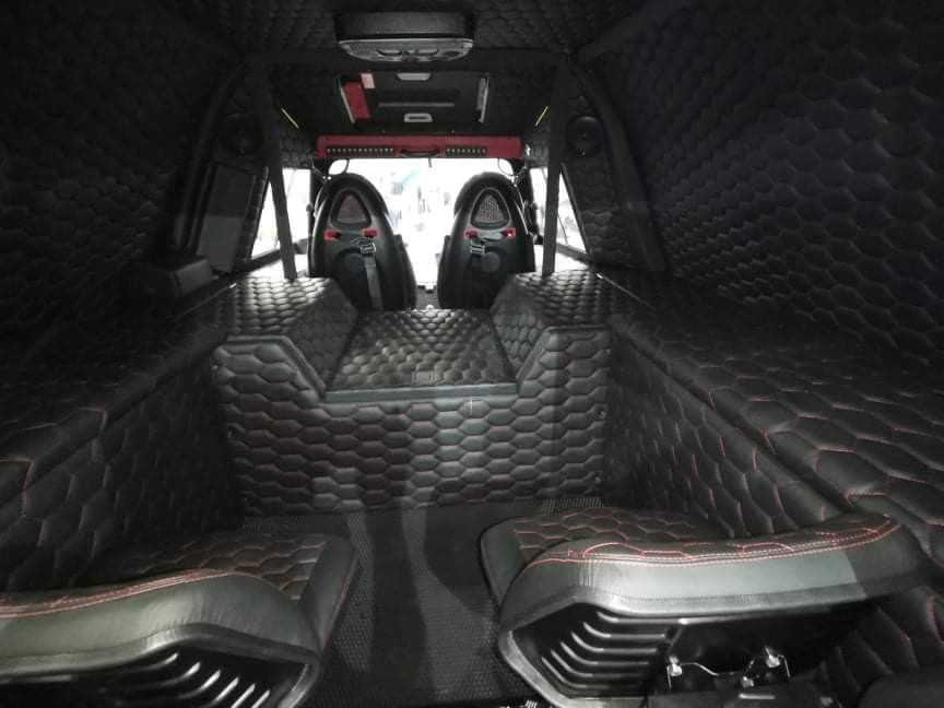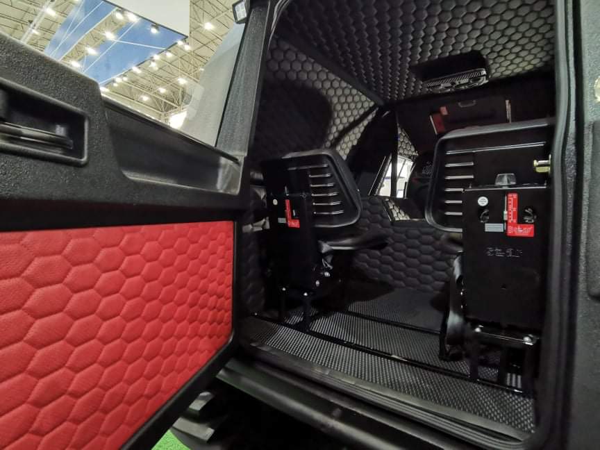 На представленной машине установлена система климат-контроля, салон отделан натуральной кожей, имеется система кругового обзора в 360 град., мультимедийная система, лебедки.