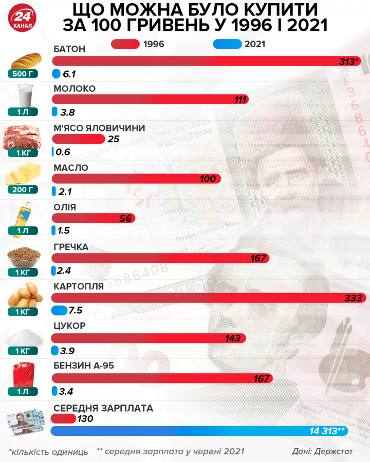 Что можно было купить на 100 гривен в 1996 году, а что можно сейчас / Новости / Finance.ua