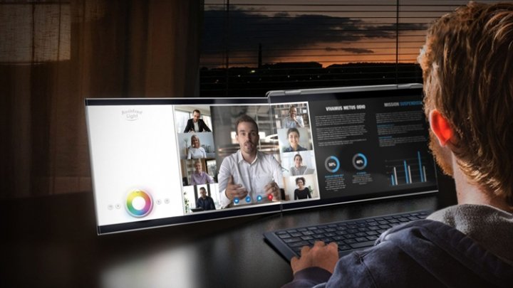 Отмечается, что обмен данными между собственно ноутбуком и подключаемыми дисплеями осуществляется посредством беспроводной связи. Дополнительные панели оборудованы аккумулятором.