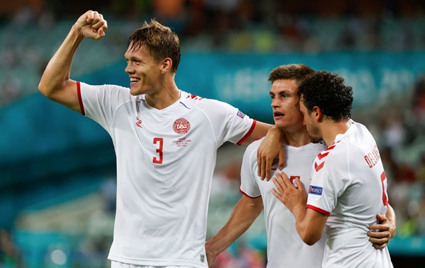 Сборная Дании выиграла первый тайм четвертьфинального матча Евро-2020 против Чехии со счетом 2:0.