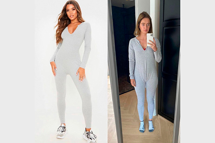 Жительница Амстердама Рианна Мейер (Rianne Meijer), на которую подписаны 1,4 миллиона человек, опубликовала коллаж, в котором показала купленный онлайн комбинезон и то, как он сидит на ней. На фотографии видно, что облегающий наряд мал знаменитости, в связи с чем на его ткани образовались складки.