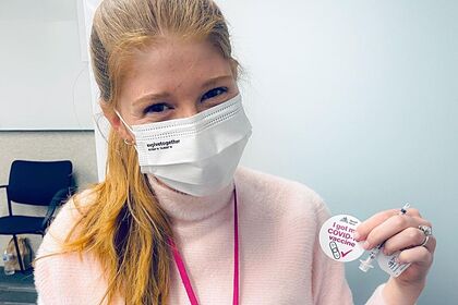 24-летняя Дженнифер Гейтс получила пока только первую дозу из двух необходимых. На фото девушка демонстрирует наклейку с надписью «Я получила свою прививку от COVID-19». По ее словам, другим также следует подумать о вакцинации. «Чем больше людей приобретут иммунитет, тем безопаснее будет для всех», — пояснила она.