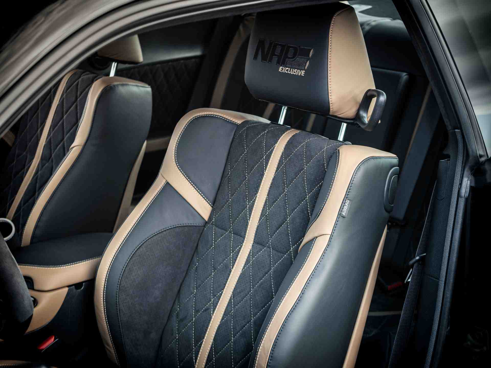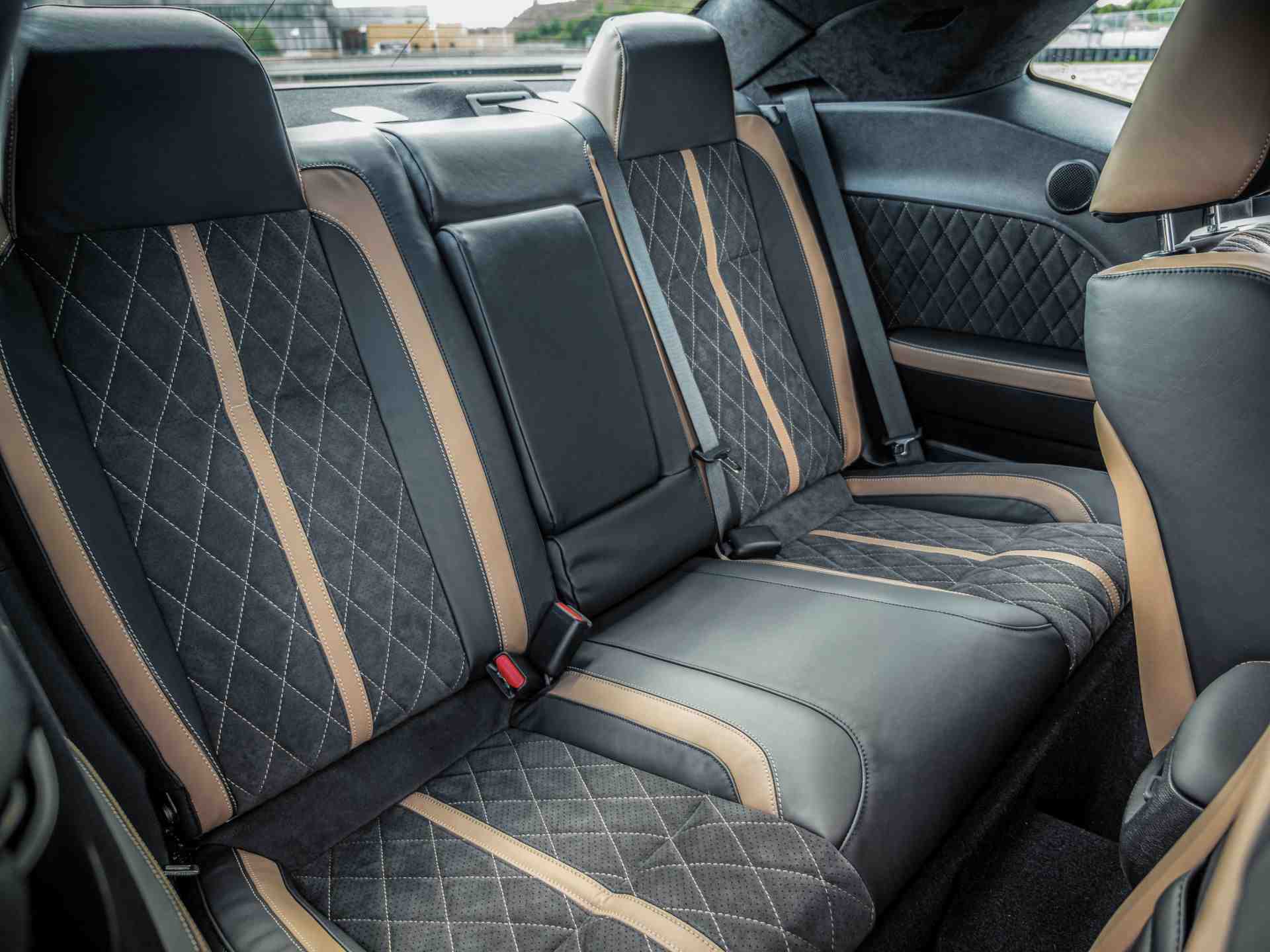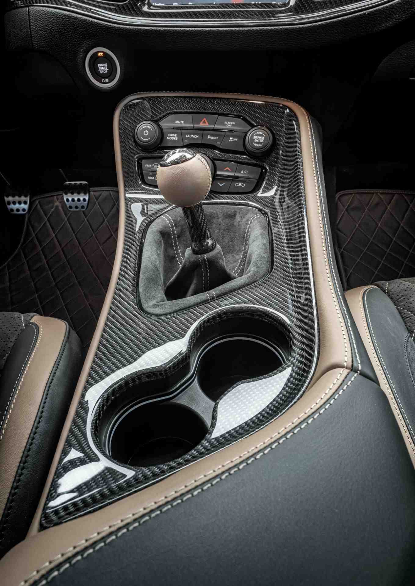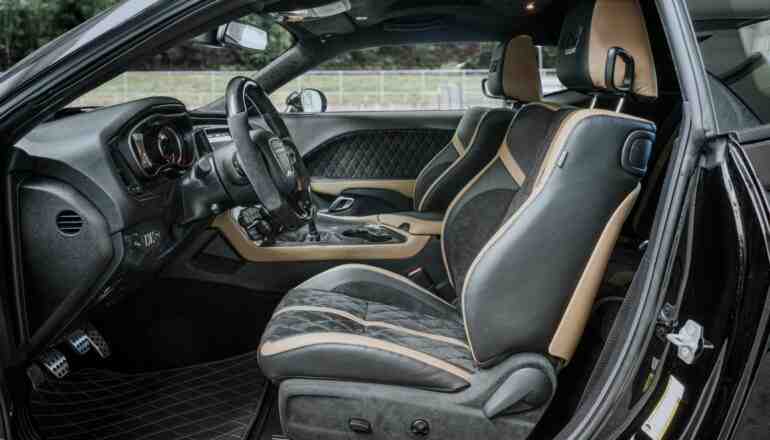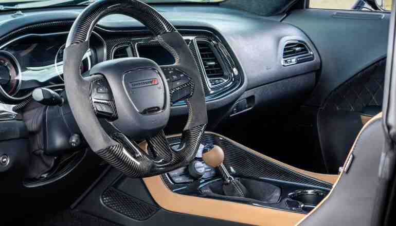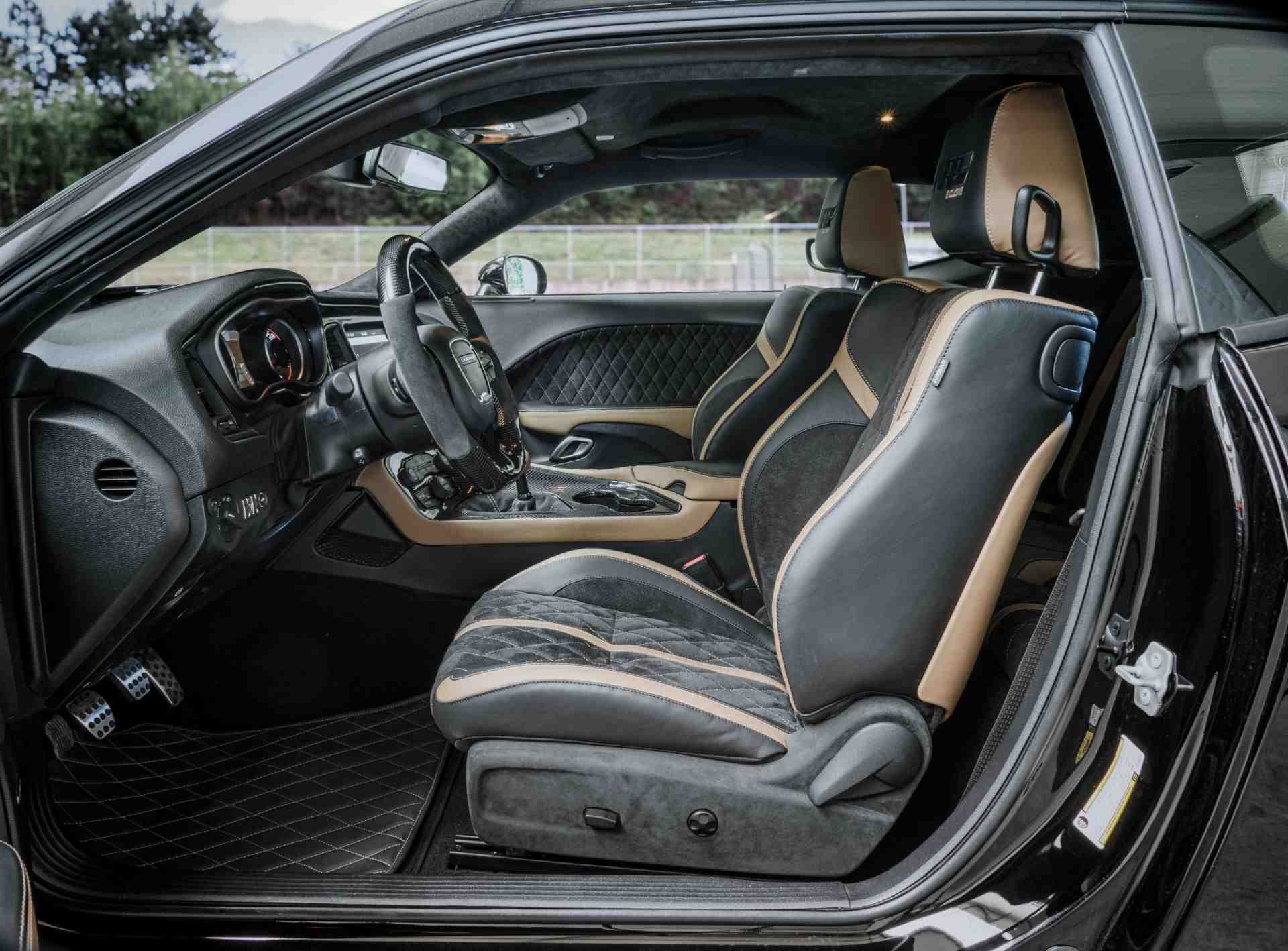 Доработки тюнеров проникли и в салон Dodge Challenger. В его отделке использована бежевая кожа Nappa и темно-серая алькантара, которую дополняют элементы из карбона. Роскоши добавляют белая строчка и оригинальный узор на сидениях, а также эксклюзивные напольные коврики.