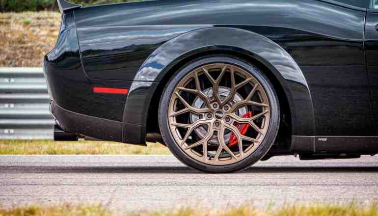 Патрубки выхлопной системы отделаны бронзой в тон 22-дюймовым колесным дискам HF2 с Y-спицами, разработанных совместно с Vossen. Они обуты в шины Continental Sport Contact 6 размера 305 / 25R22. Красные тормозные суппорты с логотипом NAP создают приятный контраст с ободами. Также у модели уменьшили дорожный просвет на 40 мм, тем самым добавив ей агрессии.