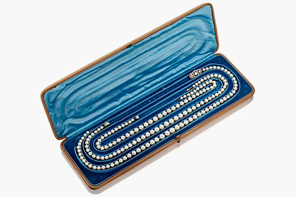 На торги были выставлены три ожерелья из натурального жемчуга, полученные герцогиней Александрой в наследство от прабабушки Алисы Манкевич (Alice Mankiewicz). Известно, что последняя была женой предпринимателя Джулиуса Вернера (Julius Werner), который занимался экспортом алмазов из Южной Африки.