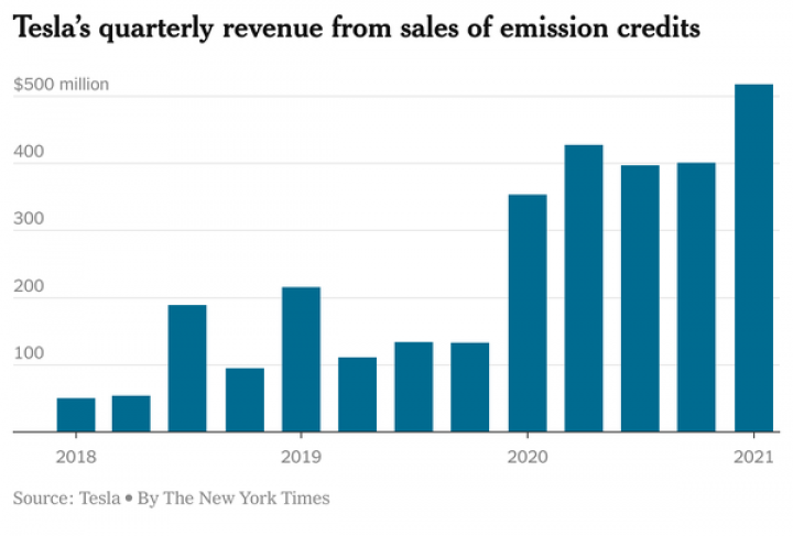 Tesla также получила выручку в $ 518 миллионов (см. ниже) от продажи карбоновых кредитов другим автопроизводителям. Для Tesla это постоянный и высокоприбыльный источник доходов.
