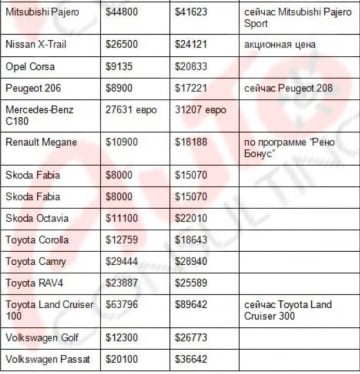 Больше всего подорожали такие модели: