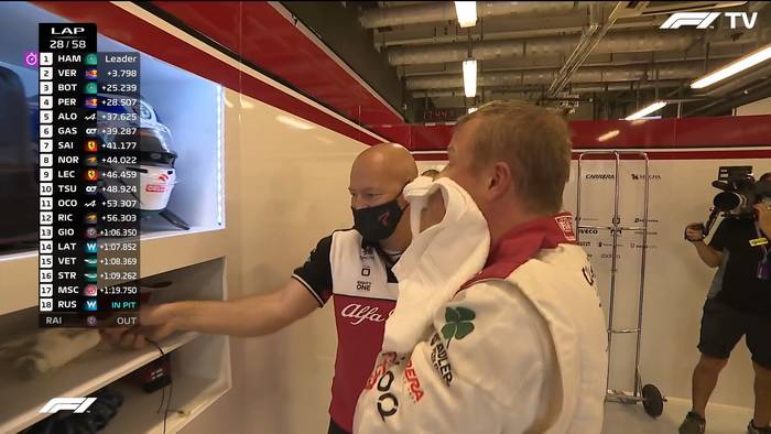 В тот момент началась серия сходов. Сначала, к огромнейшему сожалению, сошел Кими Райкконен из-за проблем с тормозами – не такое завершение карьеры хотели все фанаты для Айсмена. Параллельно замедлился Джордж Расселл. Доехав до боксов, пилот Уильямс тоже выбыл.