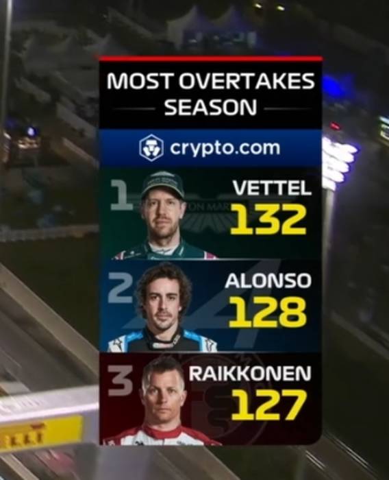 Себастьян Феттель стал чемпионом среди главных «обгонщиков» сезона, опередив других ветеранов серии Фернандо Алонсо и Кими Райкконена.
