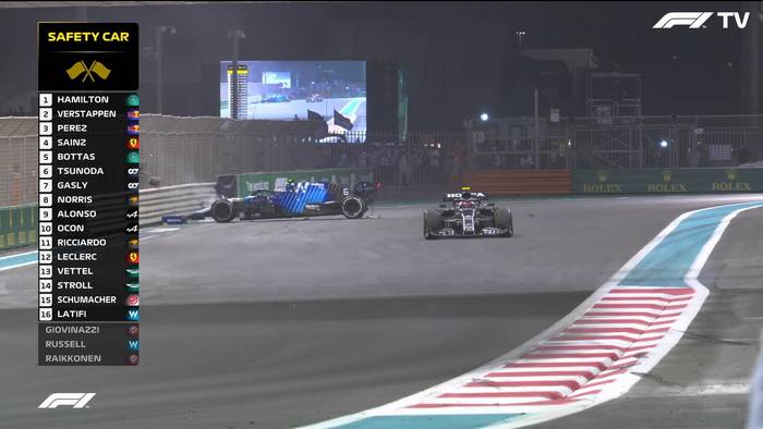 Ферстаппен начал немного сокращать отставание от Льюиса, но времени оставалось слишком мало: 11 секунд и 7 кругов до финиша + группа круговых пилотов между ними. В тот момент можно было подумать, что все, вот так и закончится такой великолепный чемпионат. Но Латифи был другого мнения.