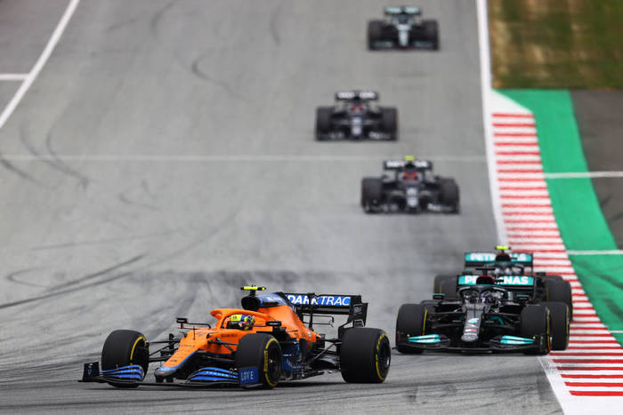 Во время волны пит-стопов благодаря 5-секундному штрафу Норриса за инцидент с Пересом на третье место вышел Боттас.