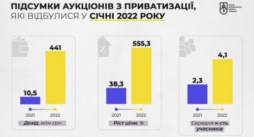 «В январе 2022 года Фондом госимущества проведено 17 успешных онлайн-аукционов на сумму 440,96 млн грн, а 286,03 млн грн уже поступили в бюджет», — говорится в сообщении.