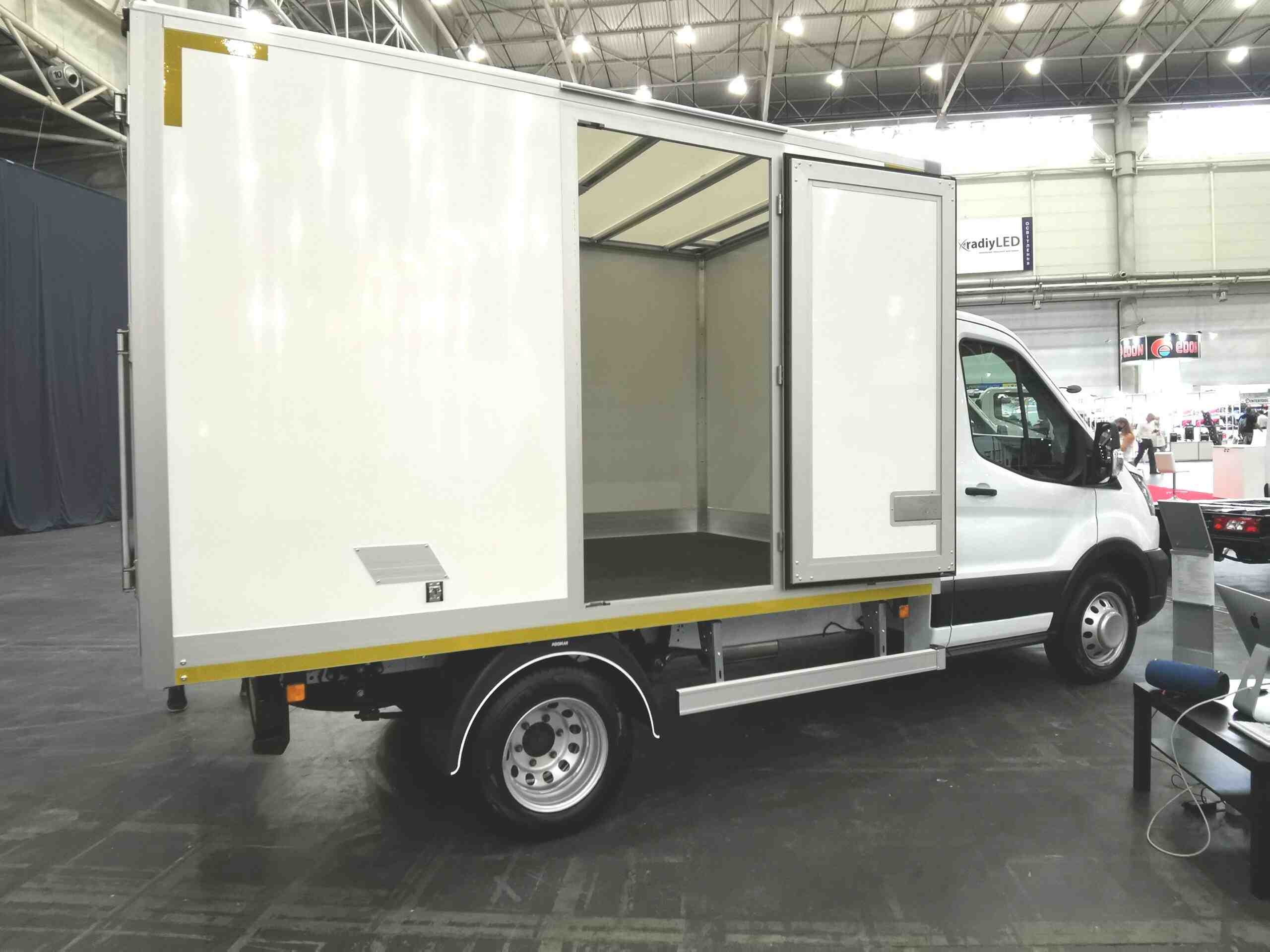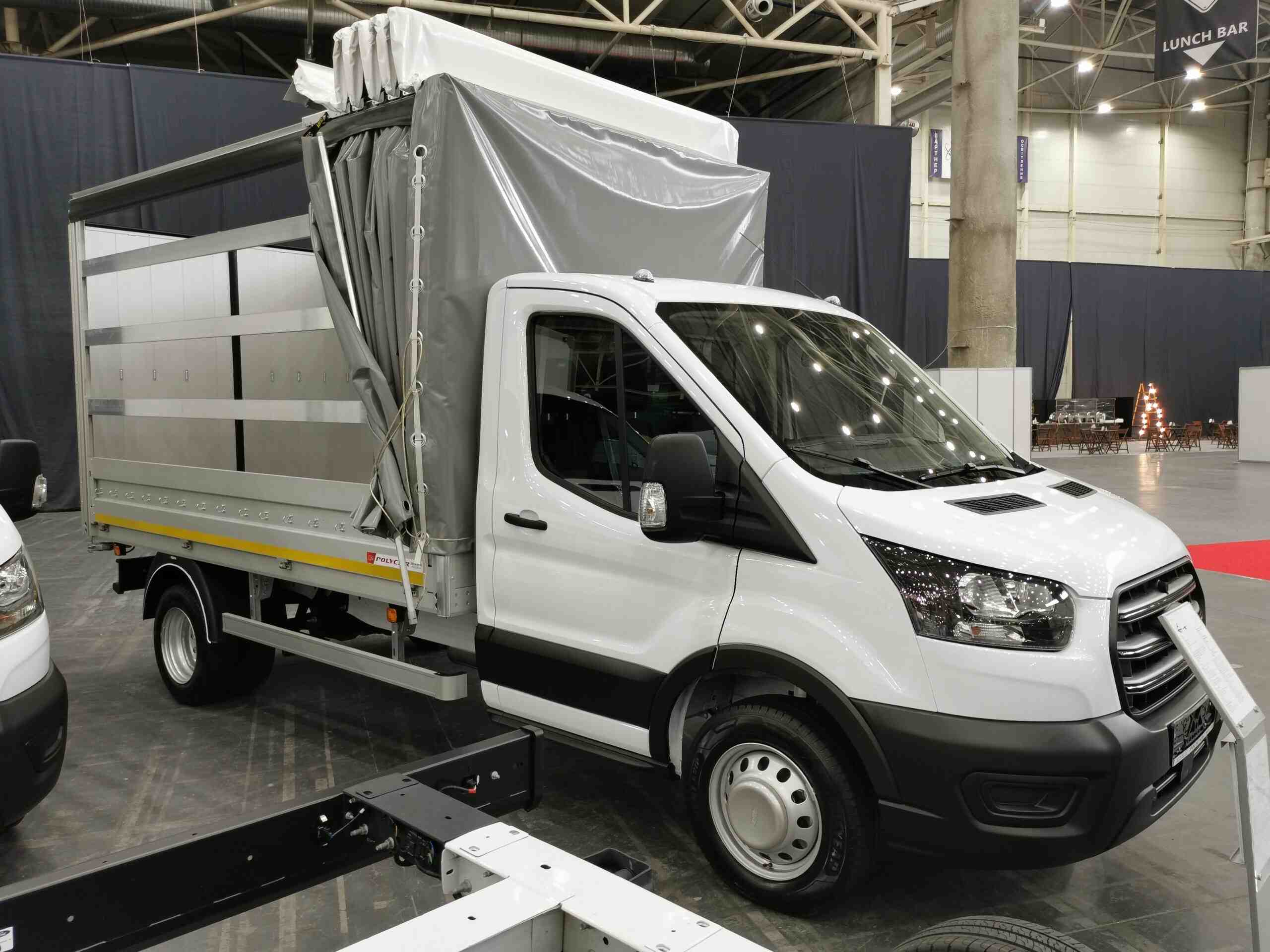 На выставке ComAutoTrans 2020, которая проходит в столичном МВЦ с 18 по 20 августа, заслуживает внимания экспозиция Ford. В частности, остановимся на двух шасси Ford Transit, оборудованных  сверхлегкими надстройками украинского производителя Polycar.