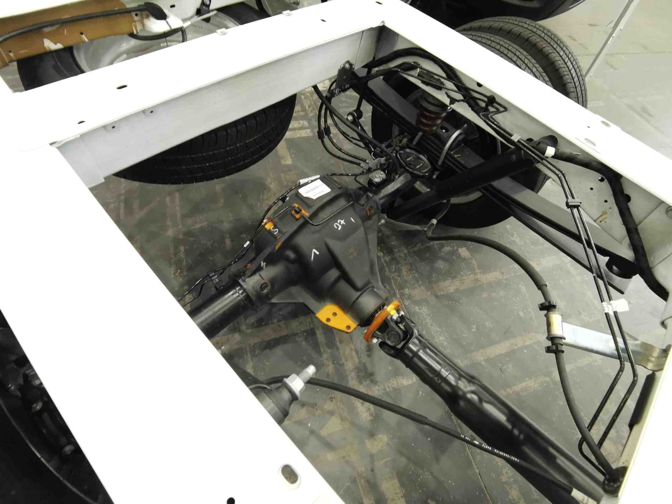 Первое шасси  – Transit со средней колесной базой, задним приводом и турбодизелем в 170 л. с. (405 Нм) стандарта Евро 6 – оснащено промтоварным фургоном “Алюмолюкс”.