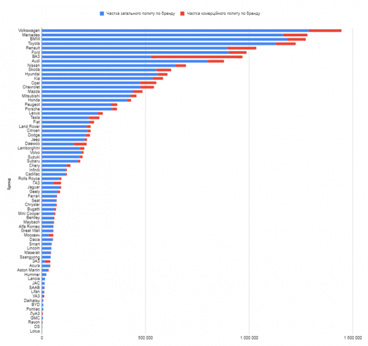 Как свидетельствуют данные консалтингового агентства «Ольшанский и Партнеры», зачастую для продажи, покупки или аренды украинцы ищут в интернете ВАЗ — свыше 440 тыс. раз в месяц или 5,3 млн раз в год.