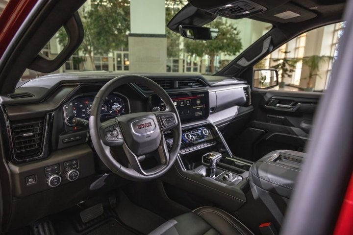Внутри установлена 8-ступенчатая автоматическая коробка передач. Более того, в 2022 GMC Sierra 1500 также встроена 31,2-сантиметровая панель управления и 34-сантиметровый сенсорный дисплей с информационно-развлекательной системой.