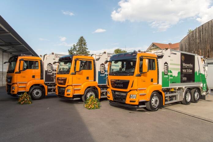 На трехосные шасси MAN TGS с дизельным двигателем Евро-6d и автоматической коробкой передач Allison установили мусоросборную надстройку с электроприводом