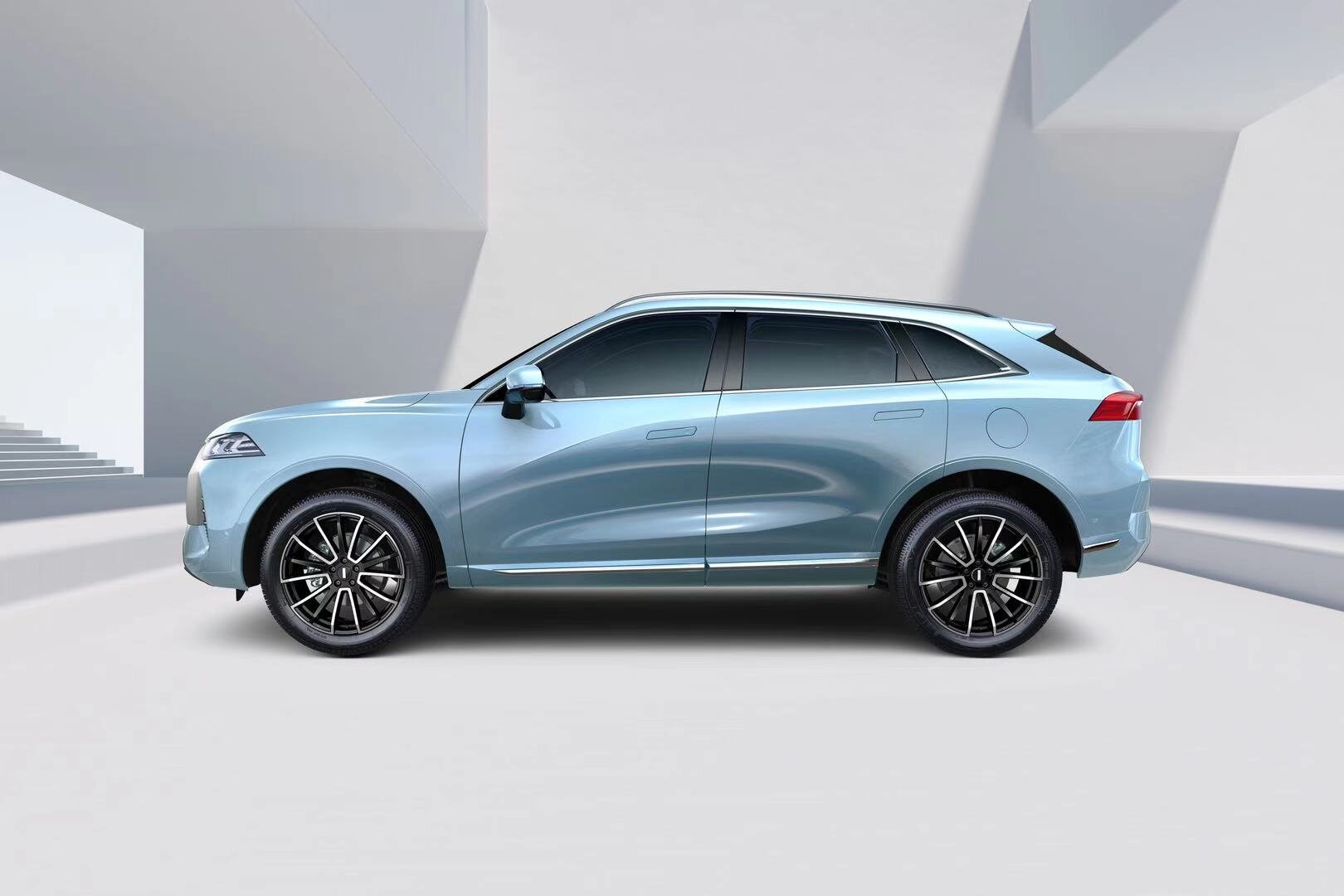 В экстерьере WEY Mocha просматривается сходство с другими моделями премиального бренда и марки Haval, также принадлежащей Great Wall. Переднюю часть кроссовера украшает огромная шестиугольная решетка с вертикальными «штрихами» и хромированной окантовкой. Также Mocha достались бамперы с черными вставками и серебристым декором, выдвижные дверные ручки, боковые зеркала на ножках, рейлинги и «акулий плавник» на крыше. На корме – перетекающие на багажную дверь фонари, название марки и массивный спойлер.