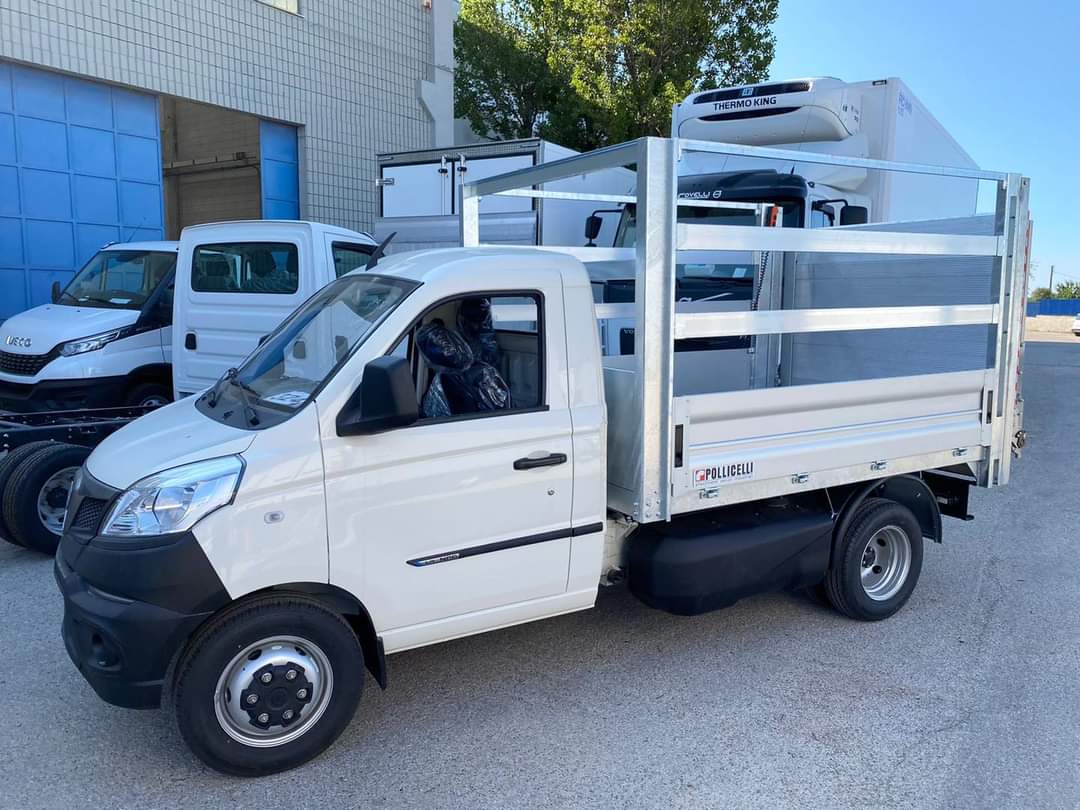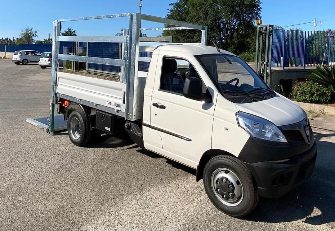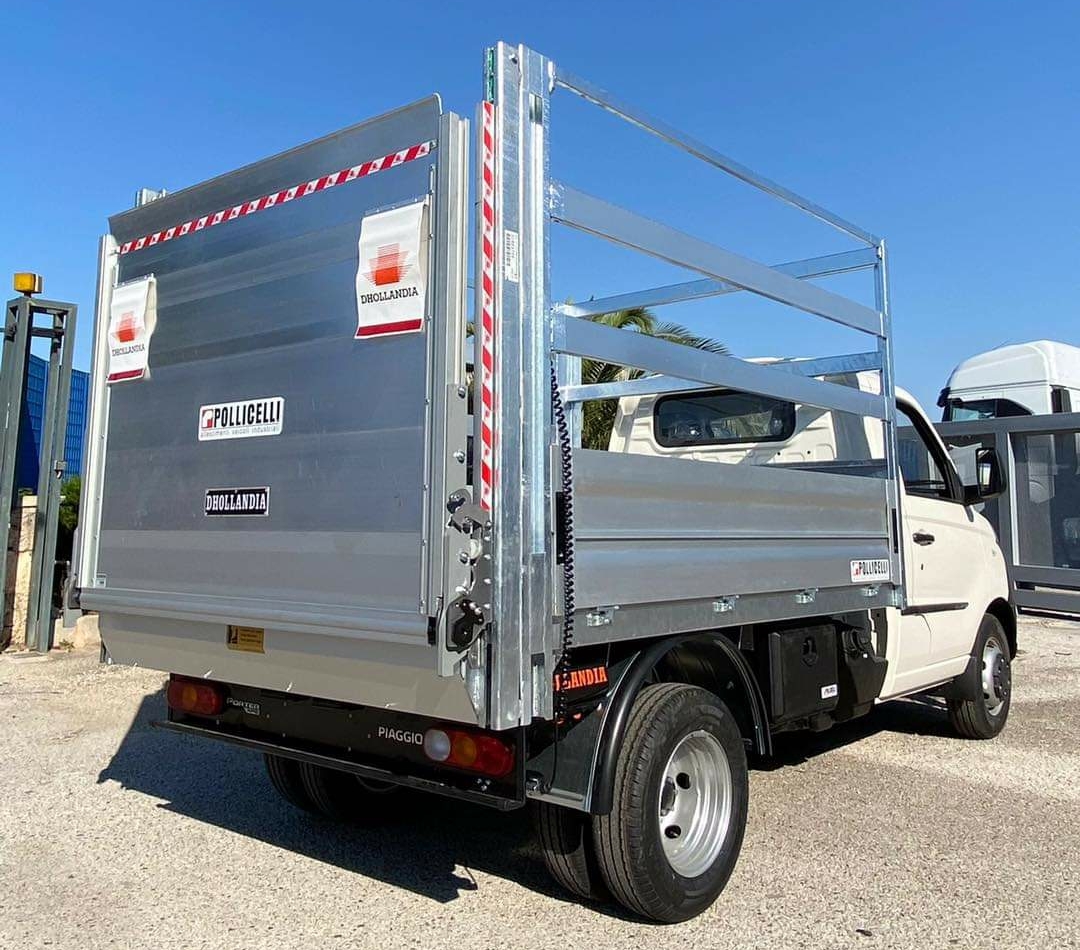 Piaggio Porter NP6 предлагается в трех версиях: с бортовой жесткой платформой, с самосвальной, а также как шасси с кабиной для установки различных надстроек. В последнем случае недавно появилась весьма интересная версия машина – на шасси была установлена бортовая платформа марки Pollicelli, а вместе с ней и гидроборт Dhollandia на 500 кг.
