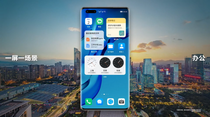 В HarmonyOS был переработан начальный экран. Так, проводя вверх по приложениям, можно создавать служебные виджеты, в которых будут отображаться сведения или услуги в режиме реального времени без необходимости запуска самого приложения.