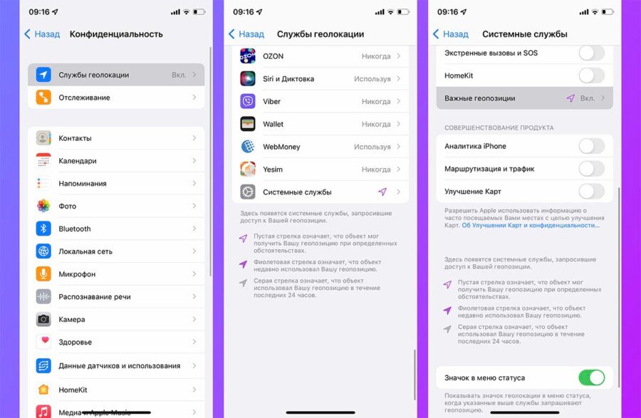 Часть данных уходит в сторонние программы и услуги, а часть остается прямо в операционной системе. iPhone по умолчанию собирает данные о местах, часто посещаемых пользователем. Делается это для работы некоторых сервисов и усовершенствования определенных алгоритмов.