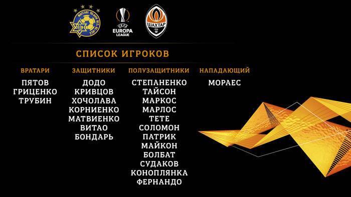 Заявка Шахтера на первый матч против Маккаби Тель-Авив: