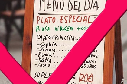 Испанская ассоциация Nueva Vida (Новая жизнь, прим. «Ленты.ру»), занимающаяся защитой женщин от жестокого обращения принесла извинения за скандальную социальную рекламу с «меню русских проституткок». Об этом представители российского диппредставительства и Россотрудничества сообщили РИА Новости.