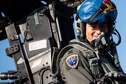 Летчик американского истребителя во время учений в Великобритании надел форму с российской символикой. Его фотографией поделился официальный Facebook-аккаунт британской базы ВВС в Лейкенхите.