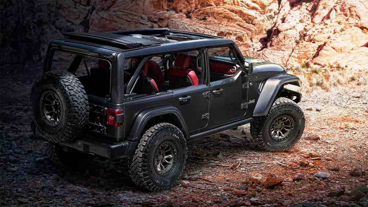 У особого внедорожного Wrangler неразрезные мосты Dana 44, самоблокирующиеся дифференциалы на обеих осях, усиленная подвеска, однотрубные амортизаторы Fox и 17-дюймовые колесные диски с 37-дюймовыми внедорожными шинами. Также внедорожнику модернизировали опоры двигателя и раму. Не исключены и другие изменения, но полной информации о прототипе пока нет.