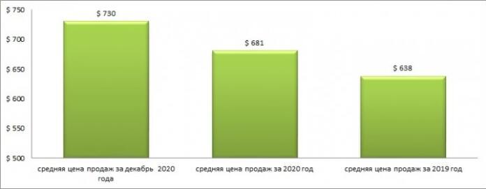 По оценкам экспертов, это на 14,5 выше, чем средняя цена продаж за аналогичный период 2019 года, и на 7,3% выше, чем средняя цена продаж за весь 2020 год.