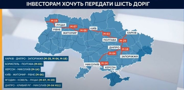 «Это Харьков-Днепр-Запорожье, трасса из Борисполя в Полтаву, Херсон-Николаев. Из столицы можно будет доехать до Ровно через Житомир, Ягодин-Ковель-Луцк и Днепр-Кривой Рог-Николаев», — рассказывает «Сегодня».