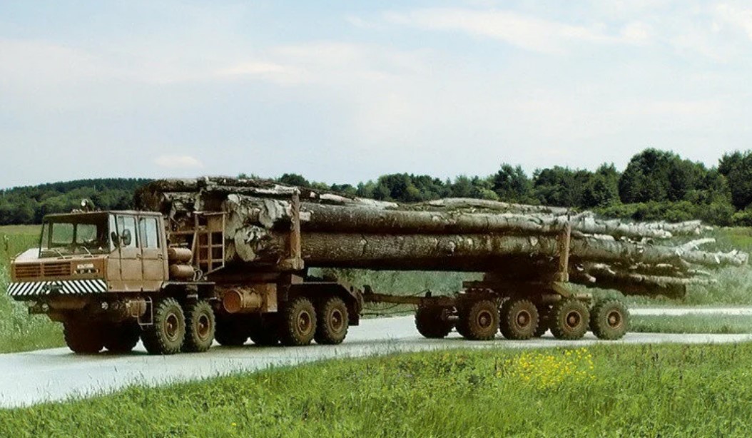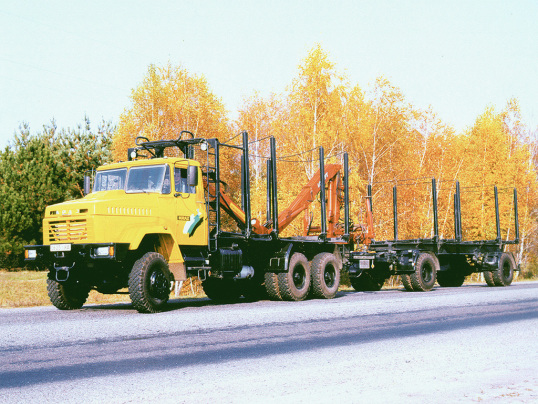 Нельзя не упомянуть и об одном интересном, хотя и чисто экспериментальном лесовозе тех лет. Еще в 1976 году Кременчугский автозавод совместно с НАМИ спроектировал четырехосную полноприводную модель КрАЗ-6434 (8х8). И что примечательно, она имела шарнирно-сочлененную раму, которая резко улучшала маневренность автомобиля.