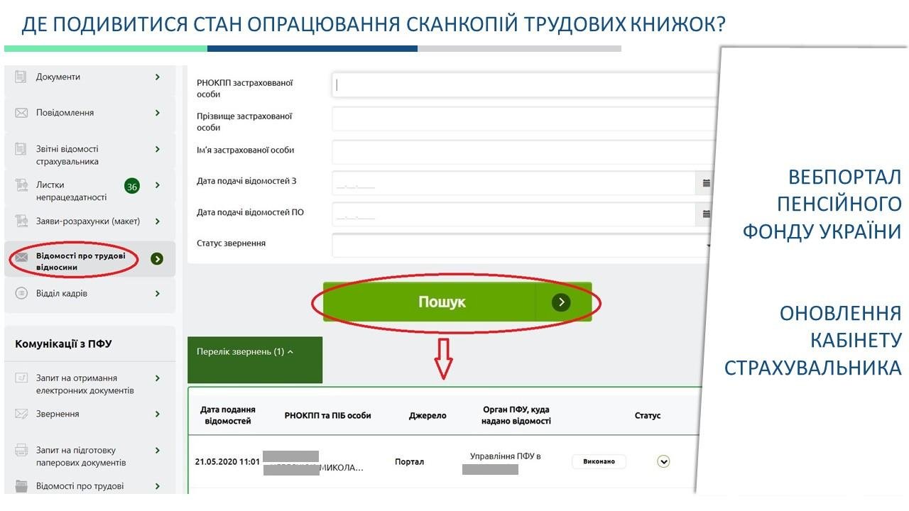 “На веб-портале Пенсионного фонда Украины состоялись обновления, соответственно и в кабинете страхователя произошли изменения. Теперь результаты всем отправленным обращениям по оцифровке сведений о трудовой деятельности работников доступны для просмотра в разделе «Сведения о трудовых отношениях»”, – сказано в сообщении.