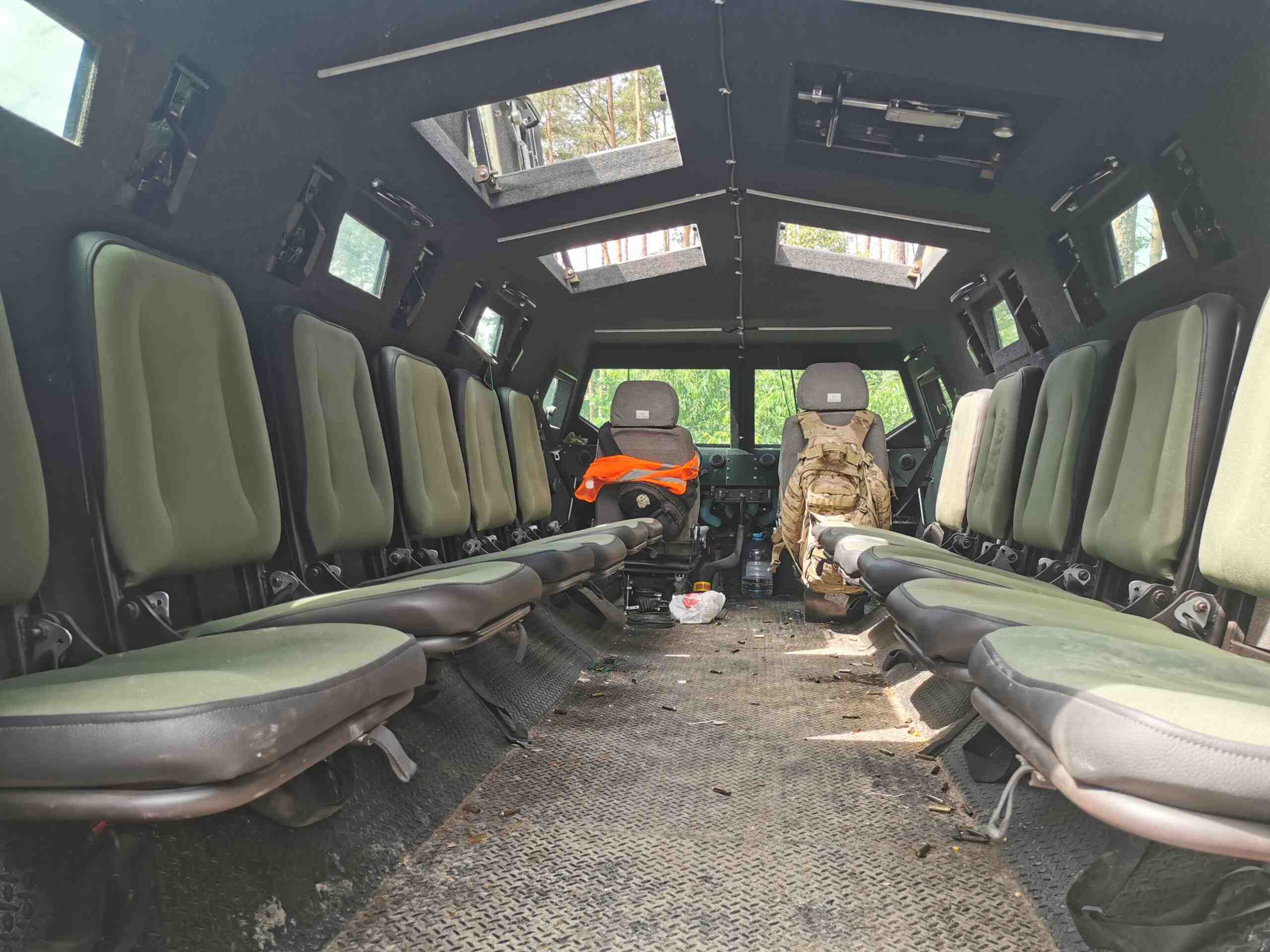 Машина получила противопульную защиту кабины, десантного отсека и двигателя – уровня ПЗСА-4. Отличительной особенностью является усиленная противоминная защита, о чем говорит V-образное днище бронекорпуса. В десантном отсеке вдоль бортов установлены 12 сидений с антиминной защитой – без жесткого крепления к полу. В крыше – 6 откидных люков. Для большего комфорта установлены кондиционер, отопитель и системы вытяжки пороховых газов.
