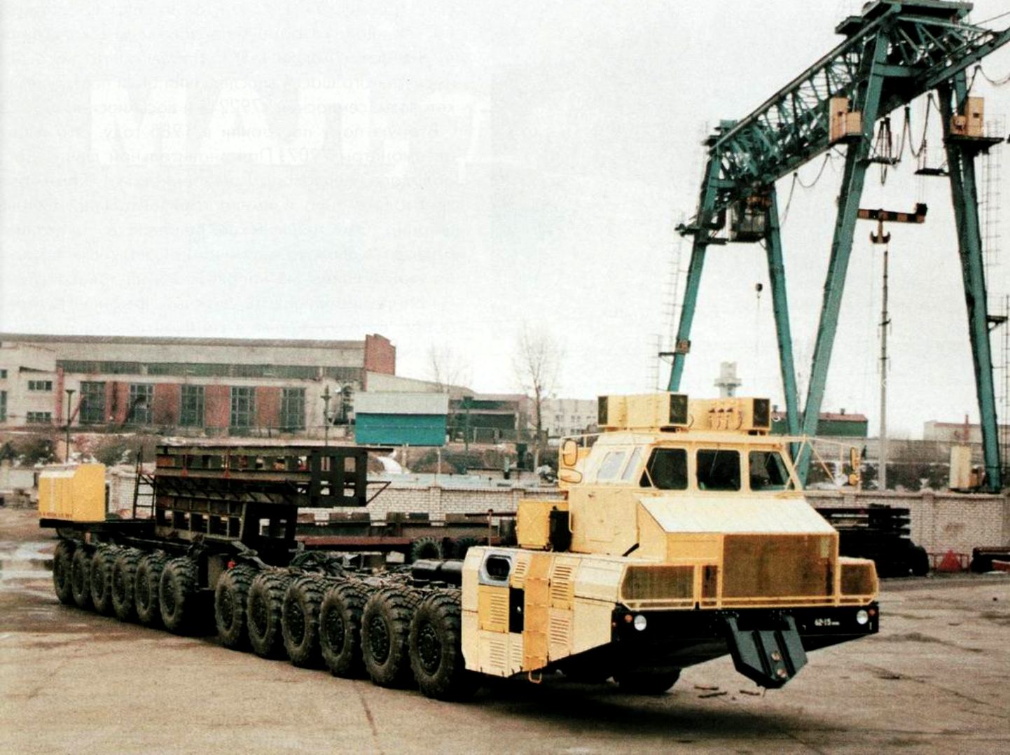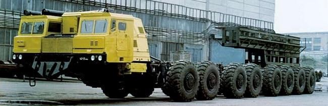 Всего через год здесь соберут восьмиосное шасси МАЗ-7906 с колесной формулой 16х16, а еще через год – двенадцатиосное (!) МАЗ-7907 (24х24). Оба они имели грузоподъемность 150 т и предназначались для транспортировки новой трансконтинентальной ракеты РТ-23 «Молодец» массой более 100 т.  Об этих машинах мы уже в свое время подробно рассказывали.
